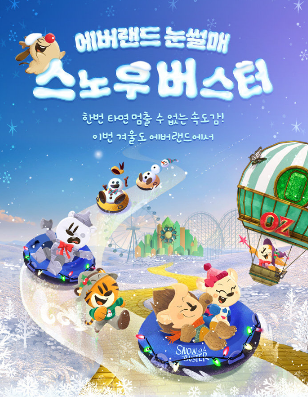 단순한 눈썰매장을 넘어 겨울 축제 분위기를 즐기고 싶다면 에버랜드 스노우버스터가 적합합니다. 대형 눈썰매와 포토존, 퍼레이드까지 함께 즐길 수 있습니다.